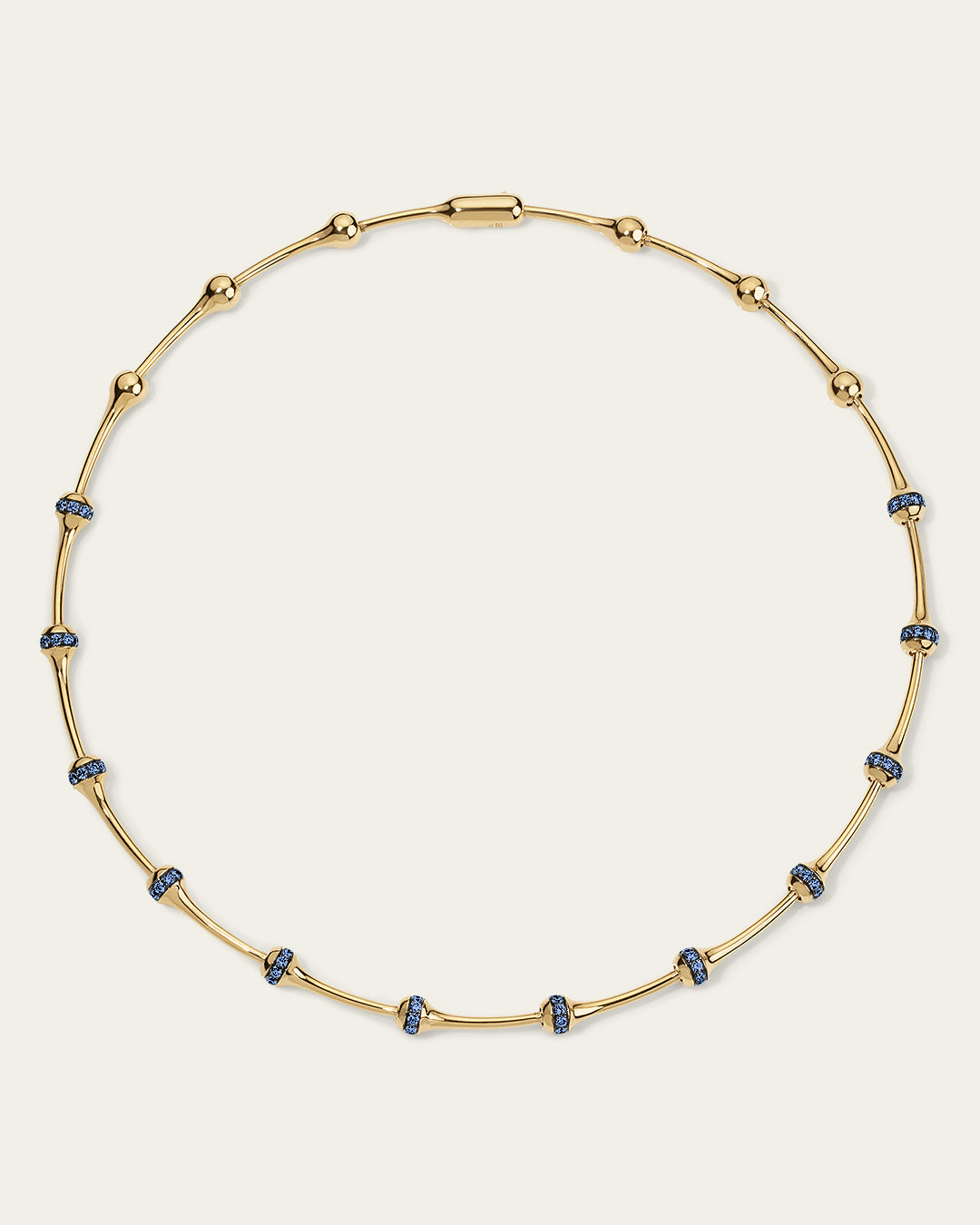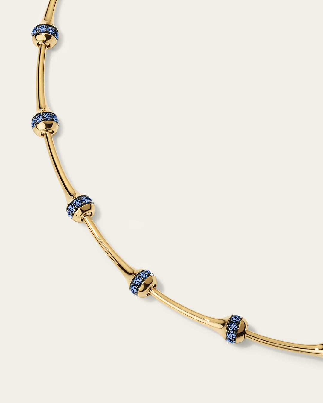Large Signature SES chain necklace in 18K gold with a proprietary linking system and clasp. Each link features a 1.8 mm pavé row of blue sapphires set in blackened gold.