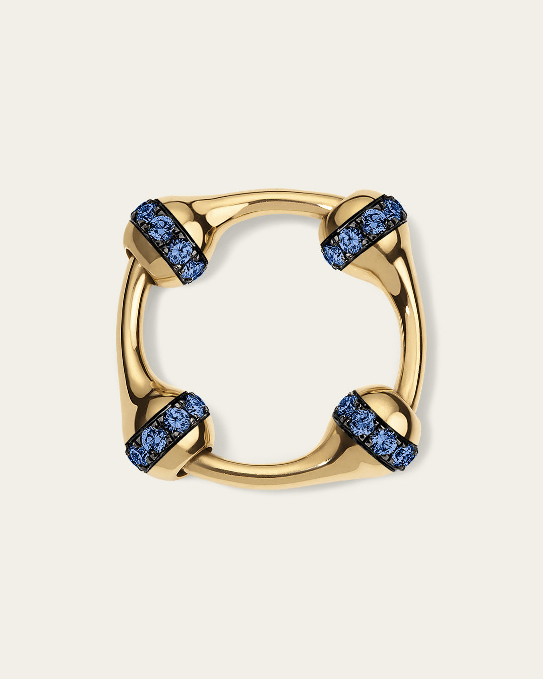 The signature SES chain ring is crafted from 18K gold and features a unique linking system. Every link is adorned with a row of 1.8 mm pavé-set blue sapphires. This particular version is the large size.