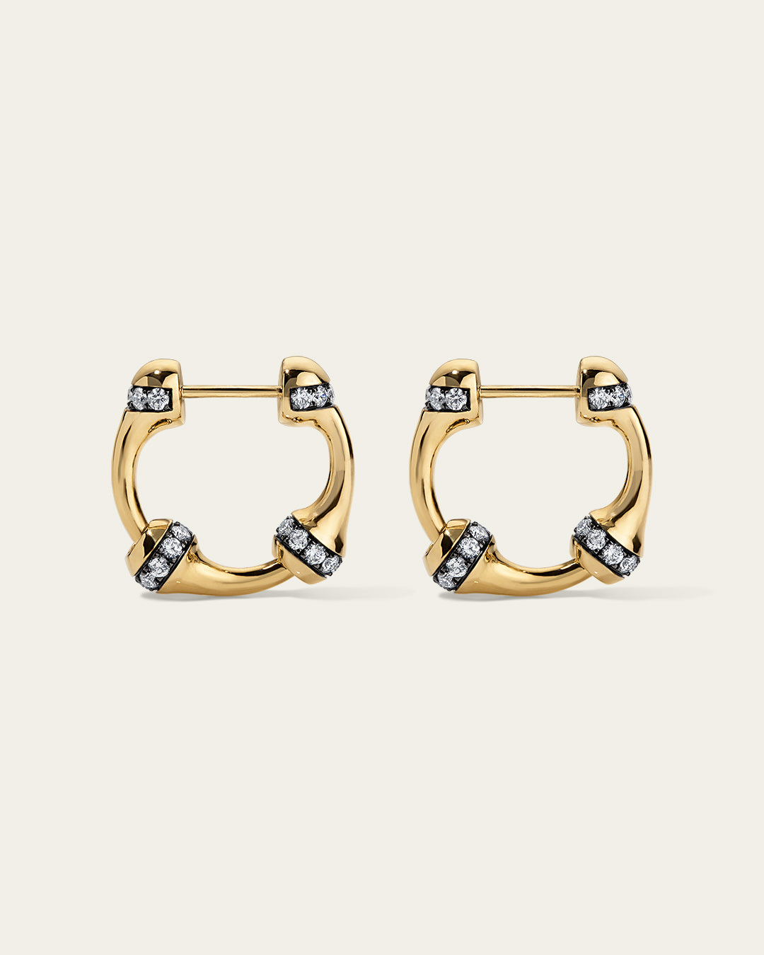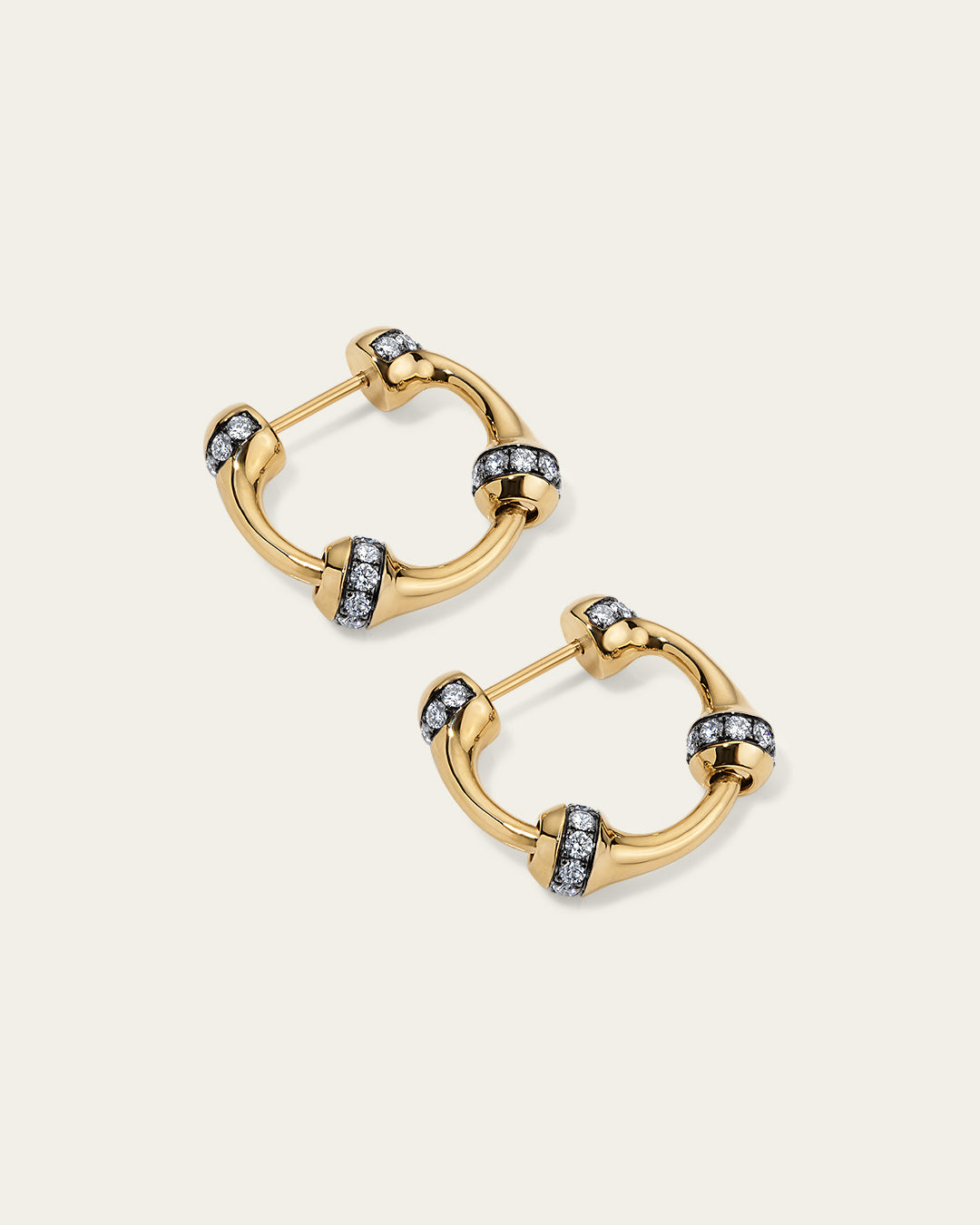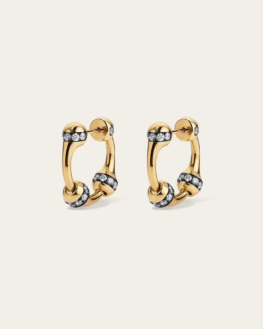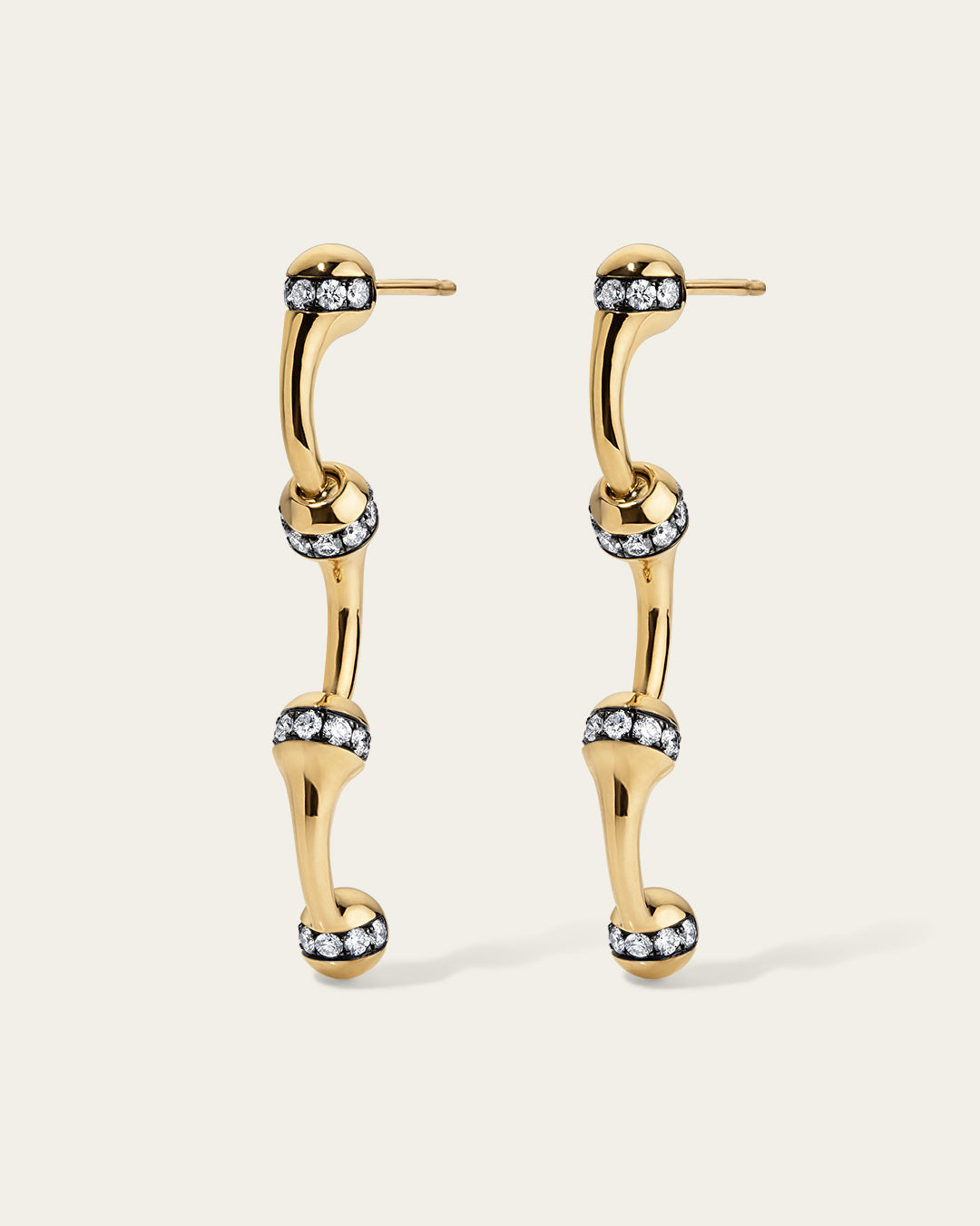 Signature SES chain hoop earrings, crafted in 18K gold with a proprietary linking system for versatile hoop or drop wear. Each large link features a row of 1.8 pavé-set diamonds in blackened gold.