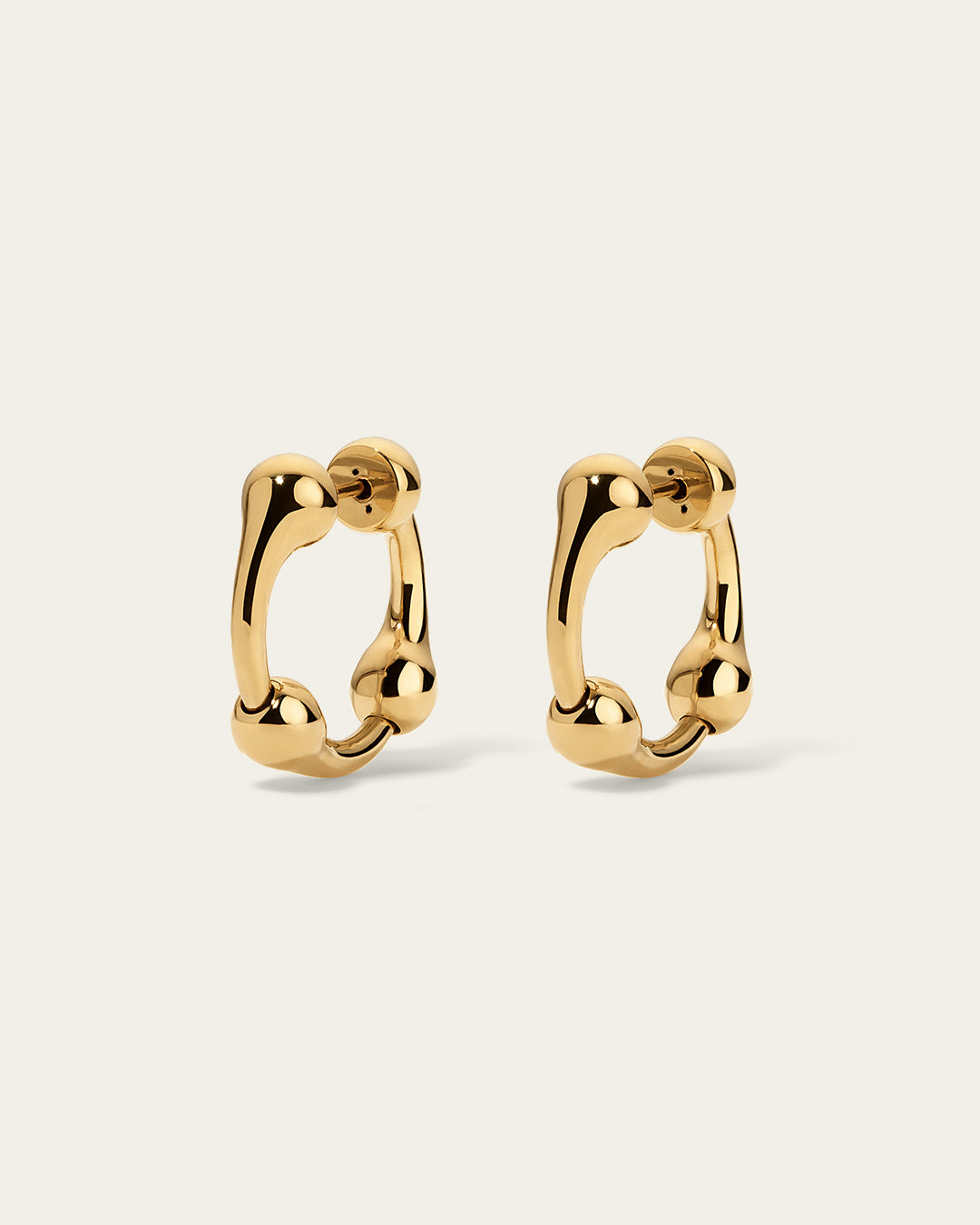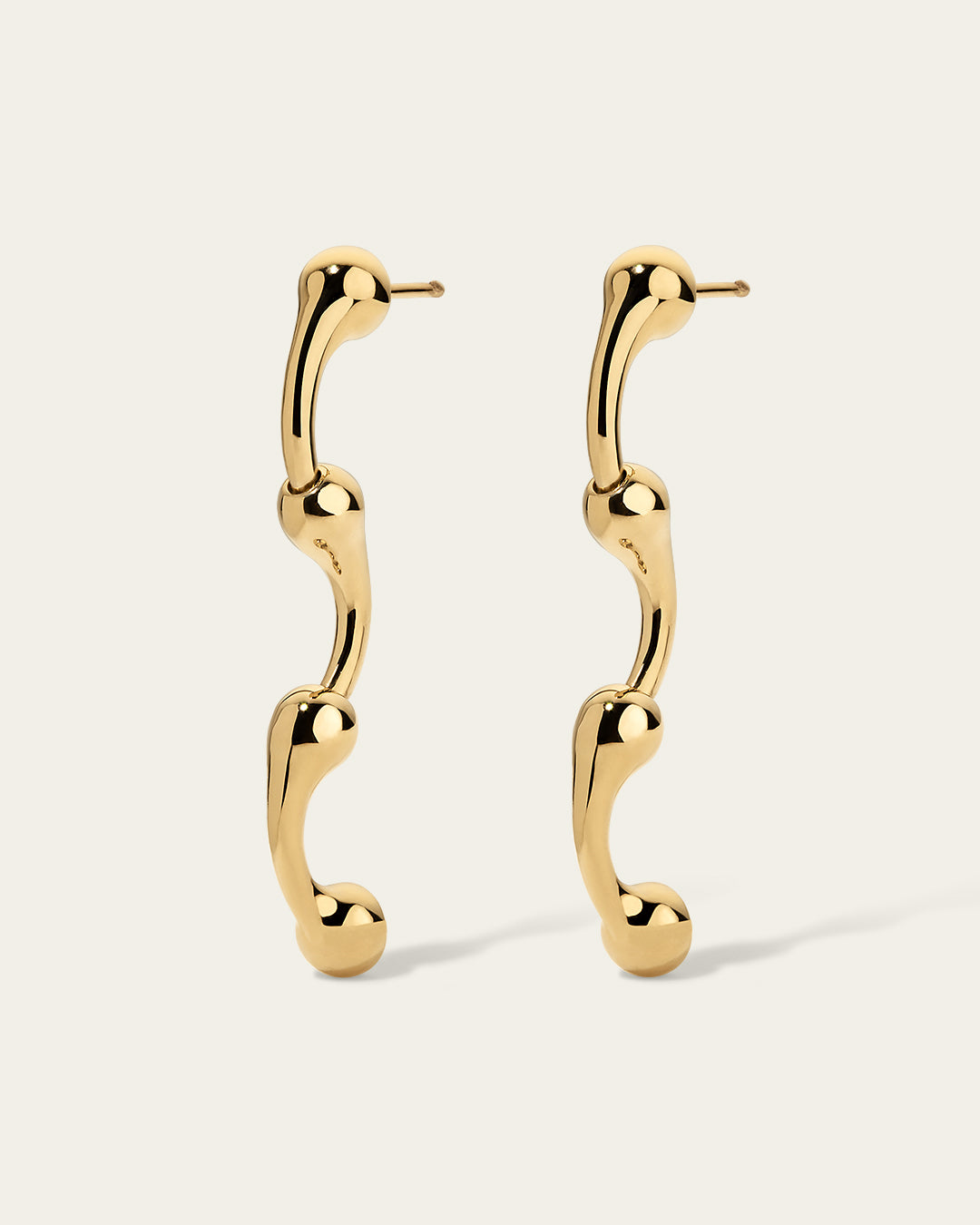 Signature SES chain hoop earrings in 18K gold with proprietary linking system allowing these earrings to be worn as either hoops or drops. This is the large size.