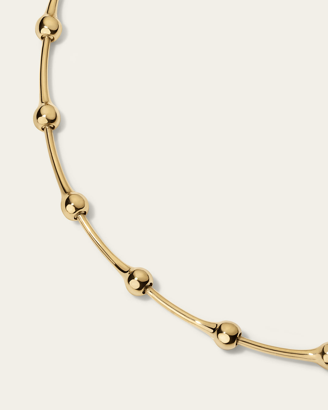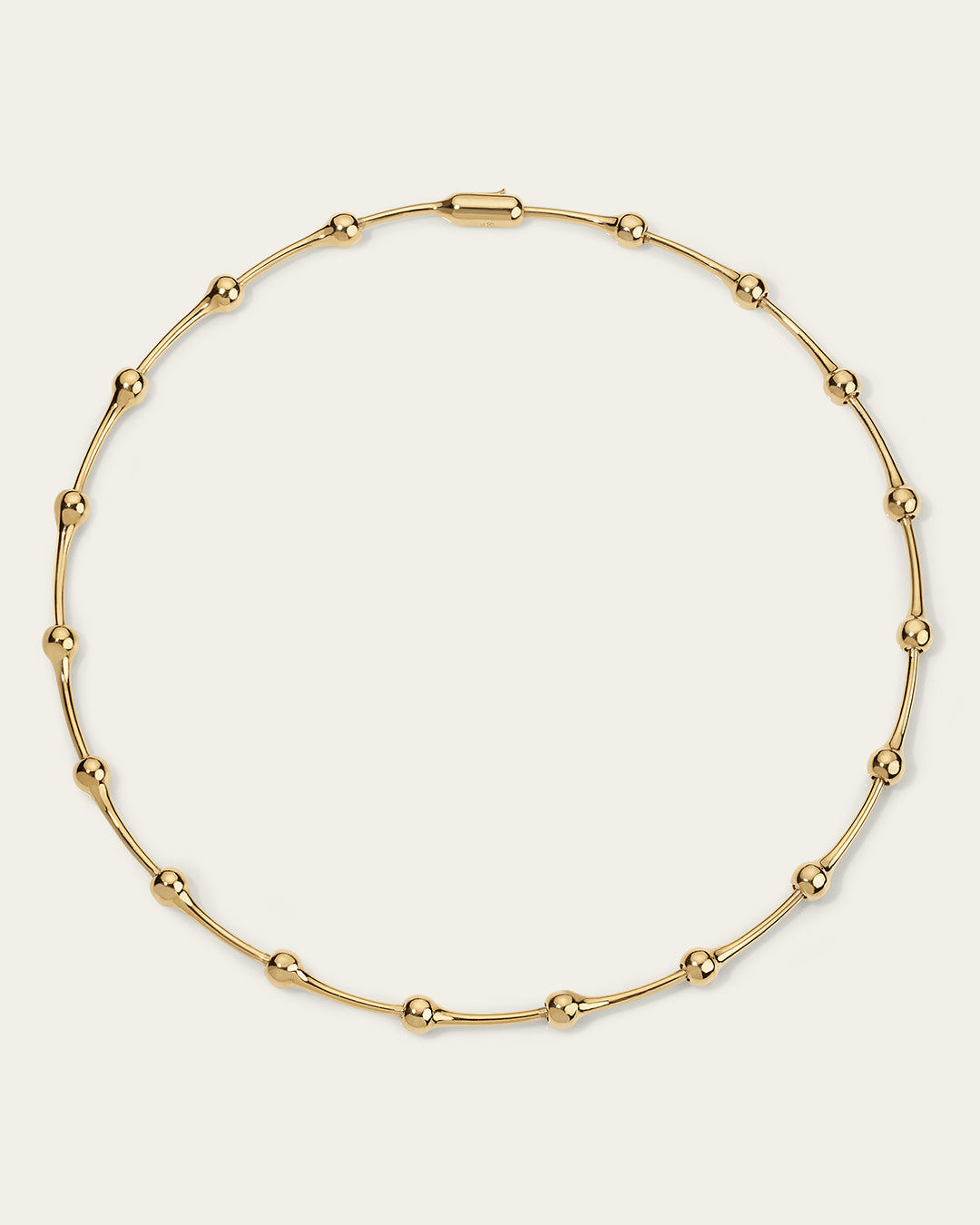 Large signature SES chain necklace in 18K gold with a proprietary linking system and clasp. Each link moves just enough to fit comfortably around the neck.