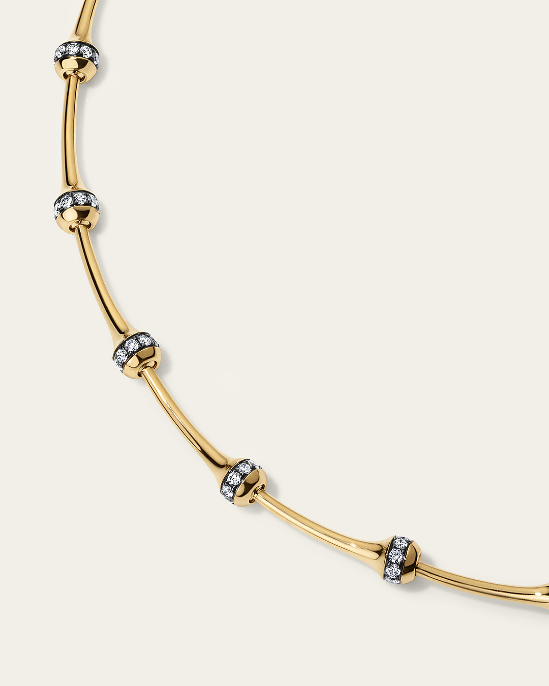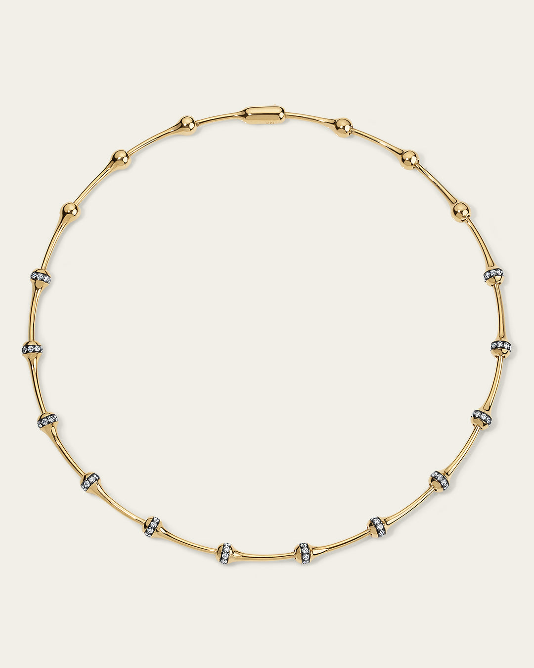 Large 18K gold Signature SES chain necklace with a proprietary clasp and linking system. Each link features a row of 1.8 mm pavé-set diamonds in blackened gold.