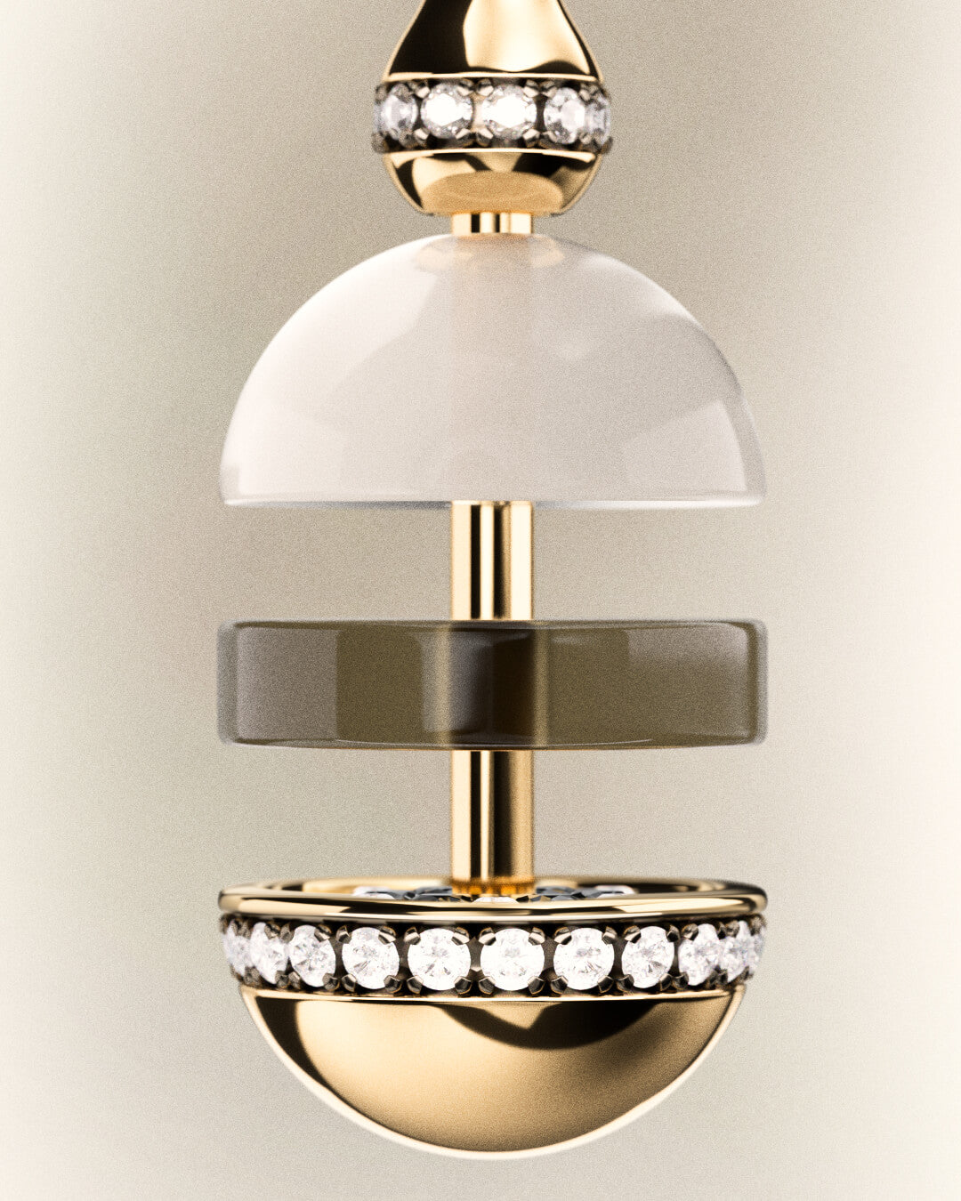 Sarah Eisman’s jewelry creation process merges technical precision with artistic vision. Her background in interior architecture influences her approach, resulting in meticulously crafted pieces engineered for movement. Her designs are intentional, structured, and meant to complement the human form, seamlessly combining craftsmanship and artistry.